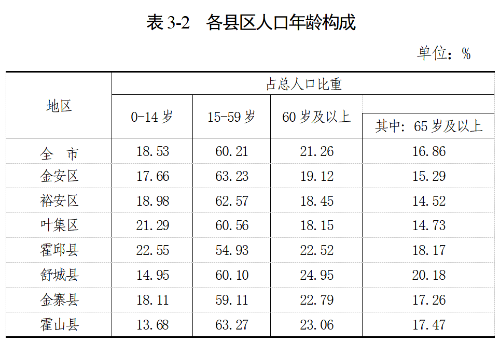 根据六安市第七次全国人口普查结果,现将2020年11月1日零时全市的人口年龄构成情况公布如下: